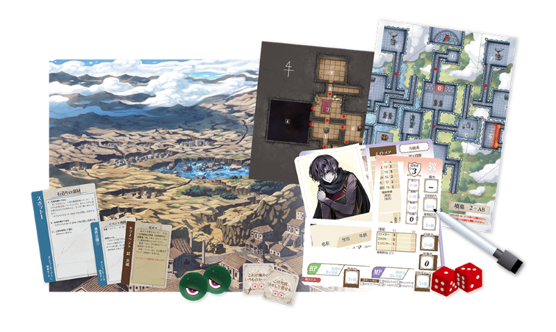 好評を博した『(同)RPGビルディングBOX』と同様のキャラクター作成ルールを搭載し、多彩なキャラクターを表現可能。種族は人間・エルフ・ドワーフ・タビット・リルドラケン・ナイトメア・ソレイユから選択できます。技能の「戦士」「密偵」「魔法使い」「射手」「魔法戦士」と組み合わせて、自分だけの冒険者を作りましょう! 今回のシナリオは墳墓探索がテーマ。6つのダンジョン(地下迷宮とは限りません!)が収録されており、それぞれの展開はカード形式で表現。ゲームマスター(GM)なしでも手軽にプレイすることが可能です。往年のプレイヤーも大満足のボリュームをじっくり味わってください。